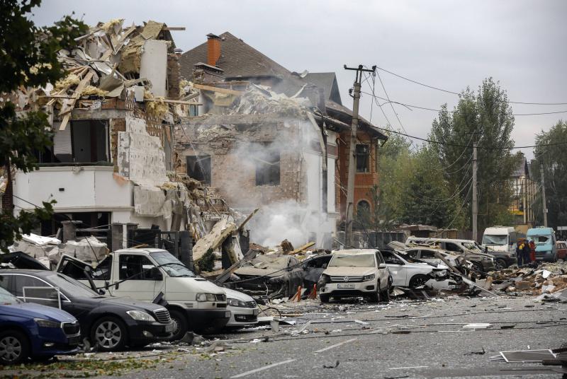 28.09.2025, Kyiv (PAP/EPA) - Damaged buildings and vehicles in a residential area targeted by Russian strikes, in Kyiv, Ukraine, 28 September 2025, amid the Russian invasion. Russia launched a large scale overnight attack across Ukraine using nearly 500 drones and 40 missiles, killing at least four people and injuring scores, according to the State Emergency Service. (fot. Sergey Dolzhenko)