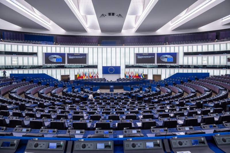 08.10.2025, Strasbourg (PAP/EPA) - European Parliament staff members prepare the hemicycle before a debate on ‘United Response to Russian violations of the EU airspaces and infrastructures’ at the European Parliament in Strasbourg, France, 08 October 2025. The current plenary session runs from 06 October until 09 October 2025. (fot. Christophe Petit Tesson)