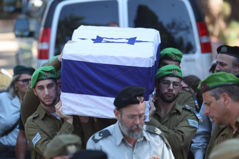 16.10.2025, Kfar Saba (PAP/EPA) - Israeli soldier honor guards carry the coffin of late Israeli soldier and hostage Tamir Nimrodi during his funeral in Kfar Saba, Israel, 16 October 2025. Tamir Nimrodi was kidnapped by Hamas on 07 October 2023 and killed in captivity. His body was returned by Hamas to Israel during the ceasefire agreement. Some 20 bodies of Israeli hostages still remain in Hamas captivity. (fot. Abir Sultan)