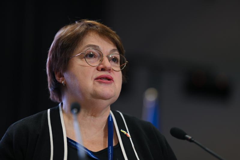 05.12.2025, Warszawa (PAP) - Doradczyni Ministra Zdrowia Ukrainy Iryna Mykychak podczas wystąpienia na konferencji "System Ochrony Zdrowia w czasie wojny. Jak skorzystać z doświadczeń ukraińskich?", 5 bm. w siedzibie Warszawskiego Uniwersytetu Medycznego. (fot. Marcin Obara)