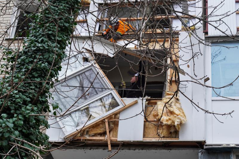 04.12.2025, Odessa (PAP) - Zniszczenia po rosyjskim ataku dronowym na osiedle mieszkaniowe w Odessie, 4 bm. Wg lokalnych władz uszkodzonych zostało 8 budynków, 7 osób zostało rannych. Trwa inwazja Rosji na Ukrainę. (fot. Alena Solomonova)