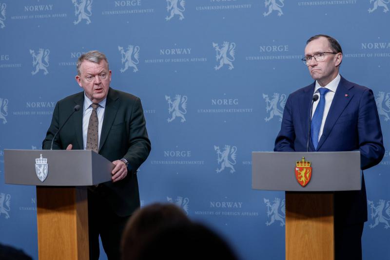 18.01.2026, Oslo (PAP/EPA) - Norway's Foreign Minister Espen Barth Eide (R) and Danish Foreign Minister Lars Lokke Rasmussen (L) during a press conference at the Ministry of Foreign Affairs in Oslo, Norway, 18 January 2026. NORWAY OUT (fot. Jonas Been Henriksen)