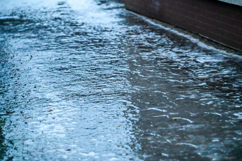 07.02.2026, Szczecin (PAP) - Oblodzone chodniki i ulice w Szczecinie, 7 bm. W północnej części Polski oprócz deszczu ze śniegiem i miejscami śniegu, w weekend przejściowo pada również marznący deszcz powodujący gołoledź. (fot. Marcin Bielecki)