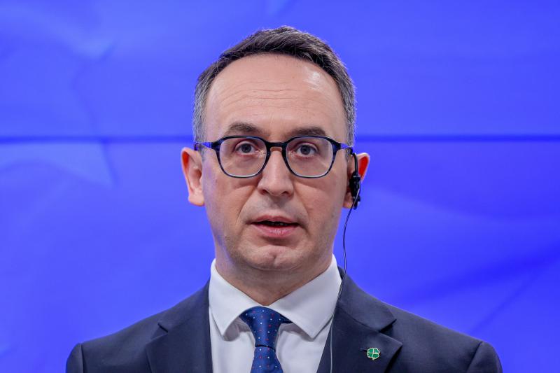 16.02.2026, Warszawa (PAP) - Minister infrastruktury RP Dariusz Klimczak podczas wspólnej konferencji prasowej z ministrem transportu Republiki Federalnej Niemiec Patrickiem Schniederem tow. podpisaniu umowy dot. współpracy kolejowej obu krajów, 16 bm. w siedzibie Ministerstwa Infrastruktury w Warszawie. (fot. Paweł Supernak)
