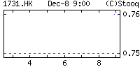 | | Market On-line | | | | | | | | Kurs | 0.77 HK$ | | Data | 14 lis, 9:00 | | Otwarcie | 0.76 | | Poprzedni | 0.77 | | Bid | 0.76 | | Wolumen | 284,000 | | Obrót | 217 tys |