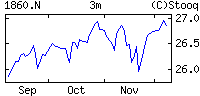 | | | Zmiana | -0.29 (-1.08%) | | Max/min | 26.46 / 26.46 | | Zmiana 52t | +3.20 (13.76%) | | Max/min 52t | 26.95 / 21.46 |
