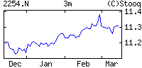 | | | Zmiana | -0.020 (-0.18%) | | Max/min | 11.210 / 11.210 | | Zmiana 52t | +0.160 (1.45%) | | Max/min 52t | 11.360 / 10.830 |