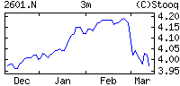 | | | Zmiana | +0.02 (+0.49%) | | Max/min | 4.09 / 4.09 | | Zmiana 52t | +0.50 (13.93%) | | Max/min 52t | 4.07 / 3.53 |