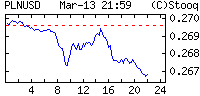 | wto, 20 sty 2026, 9:37 CET, NY 3:37, Londyn 8:37, Tokio 17:37, WIG20 -1.15% | Ogólnie: Polish Zloty / U.S. Dollar (PLNUSD) | | 20 sty, 9:37 0.276998 +0.001264 (+0.46%) |