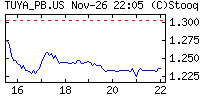 | nie, 9 lis 2025, 22:26 CET, NY 16:26, Londyn 21:26, Tokio 6:26, ^SPX +0.13% | Ogólnie: Tuya Inc P/BV (TUYA_PB.US) | | 7 lis, 22:04 1.208 -0.023 (-1.87%) |