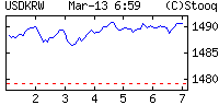 | | Market On-line | | | | | | | | Kurs | 1473.28 ₩ | | Data | 12 gru, 7:00 | | Otwarcie | 1471.88 | | Poprzedni | 1472.73 | | Bid | 1473.03 |
