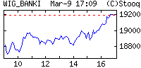 | pon, 8 gru 2025, 15:07 CET, NY 9:07, Londyn 14:07, Tokio 23:07, WIG20 +0.45% | Ogólnie: WIG-Banki (WIG_BANKI) | | 8 gru, 14:52 17904.56 +218.89 (+1.24%) |